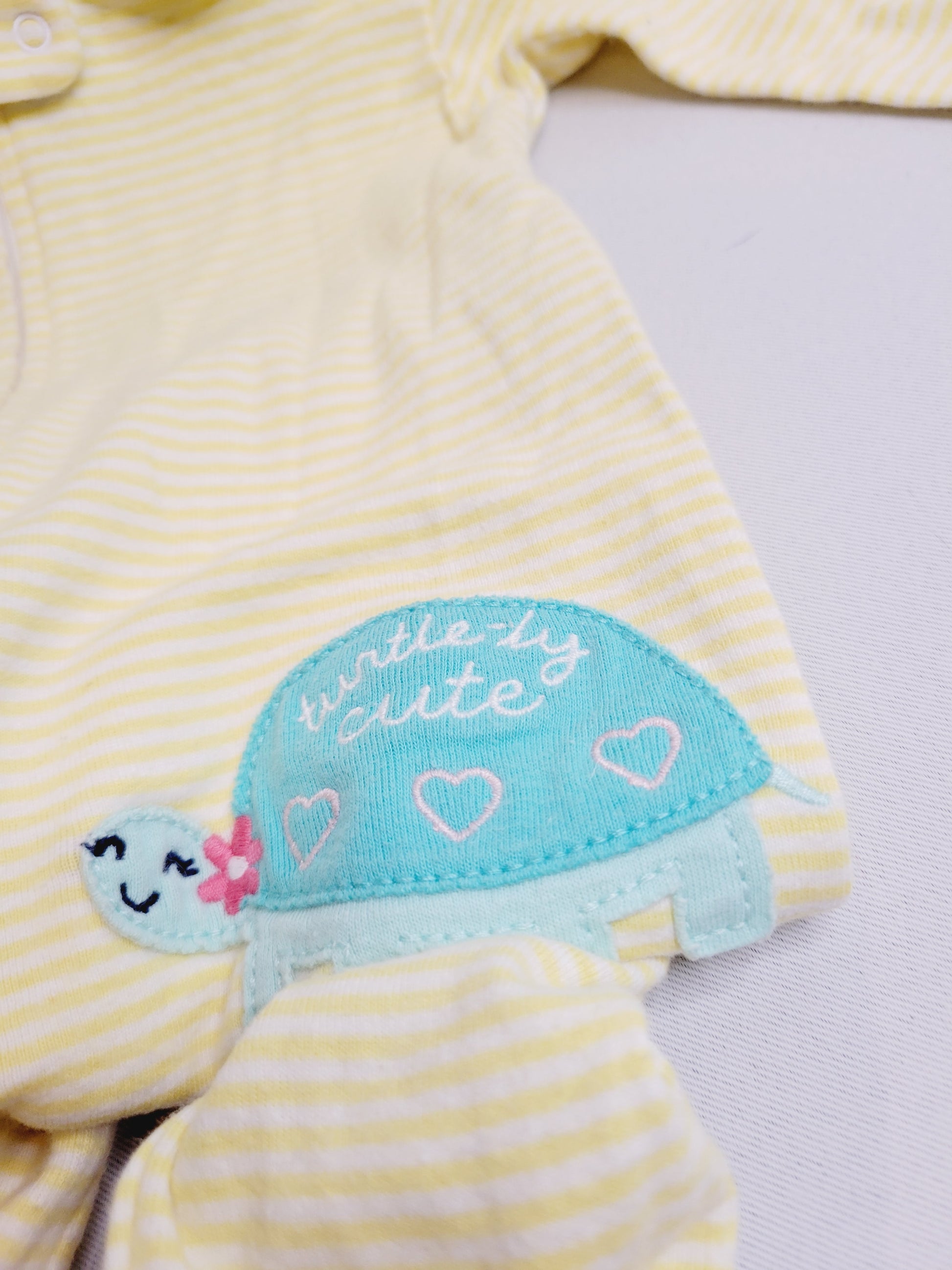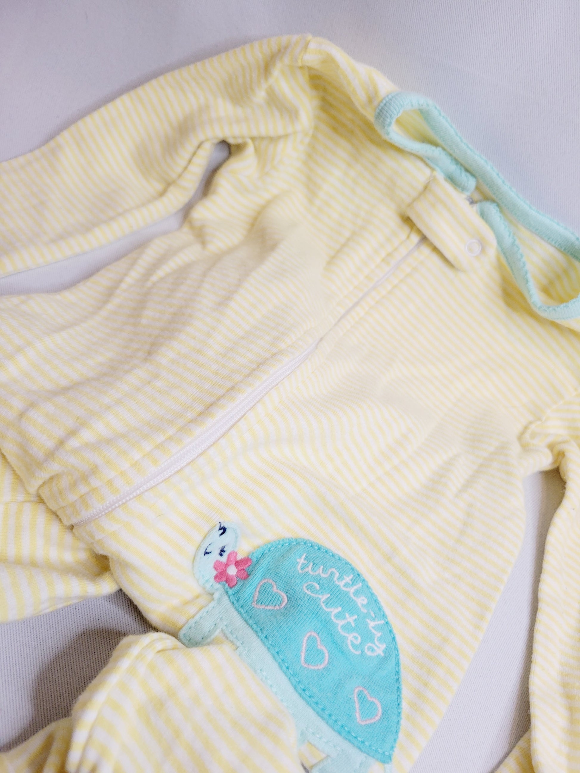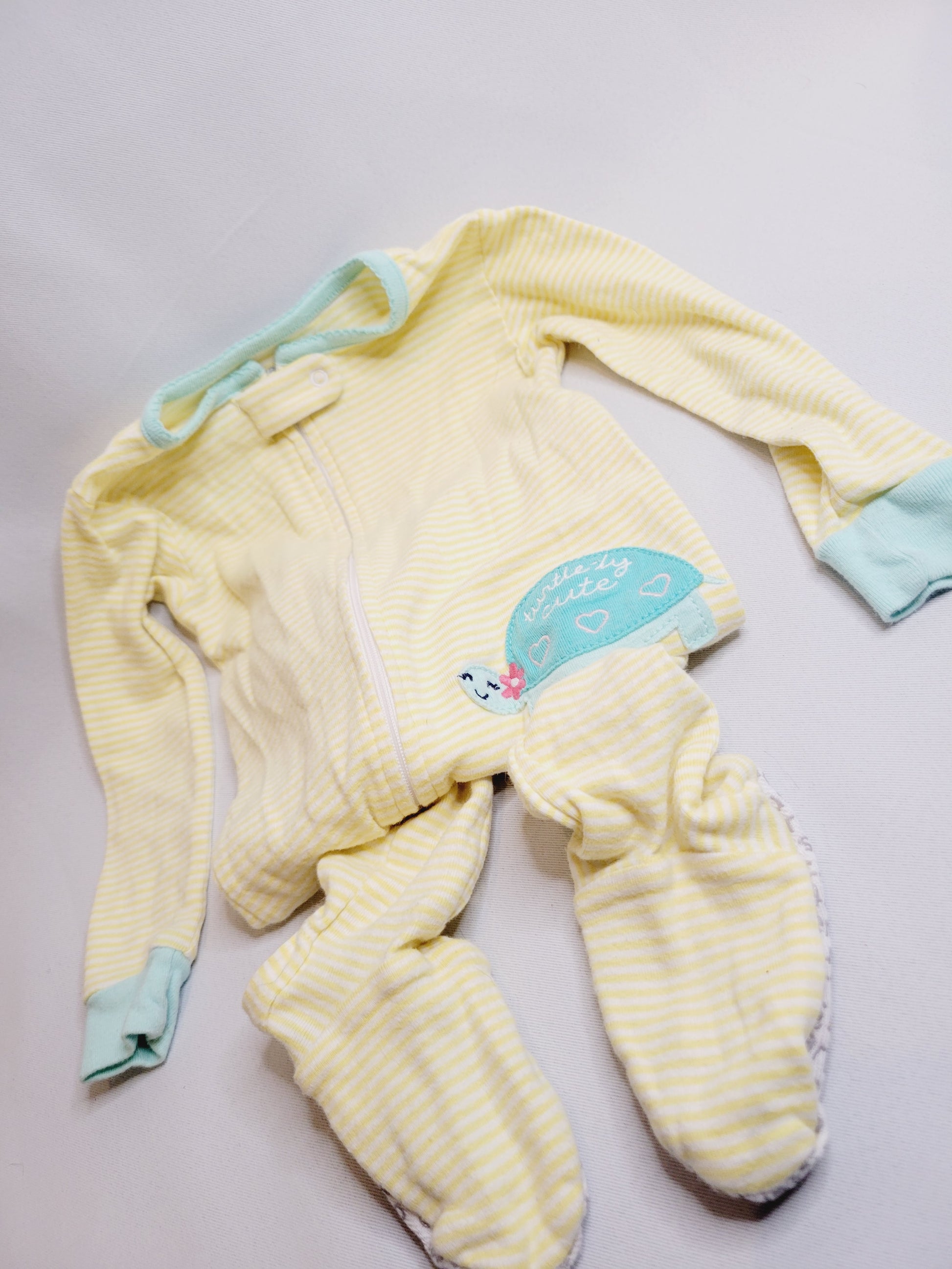 Carter's Footed Pajamas, yellow striped with turtle, Size 18M